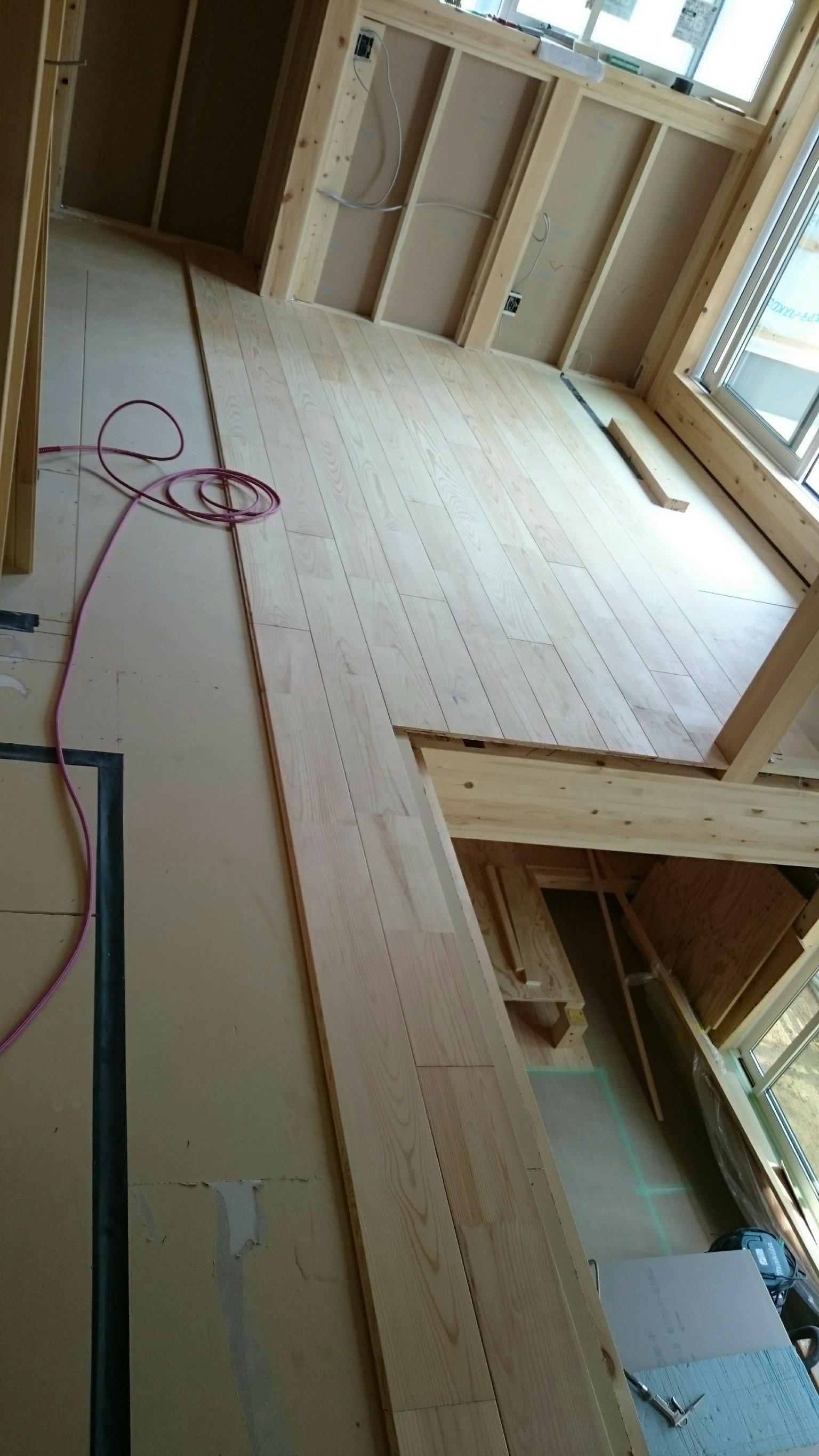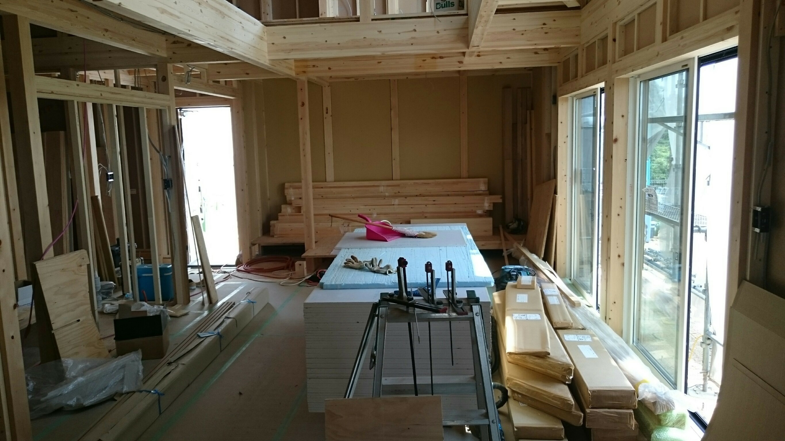 2017/07/21 サイエンスホームT様邸新築工事/造作中2 前回のT様邸新築工事の更新から三週間が経ちガラッと変わりました 一階にボードが積んであるということはそろそろ部屋らしく見えてきますね♪ 二階にはフローリングが進出!! そして毎回存在感を感じさせるこの吹抜けどう仕上がるのか楽しみです