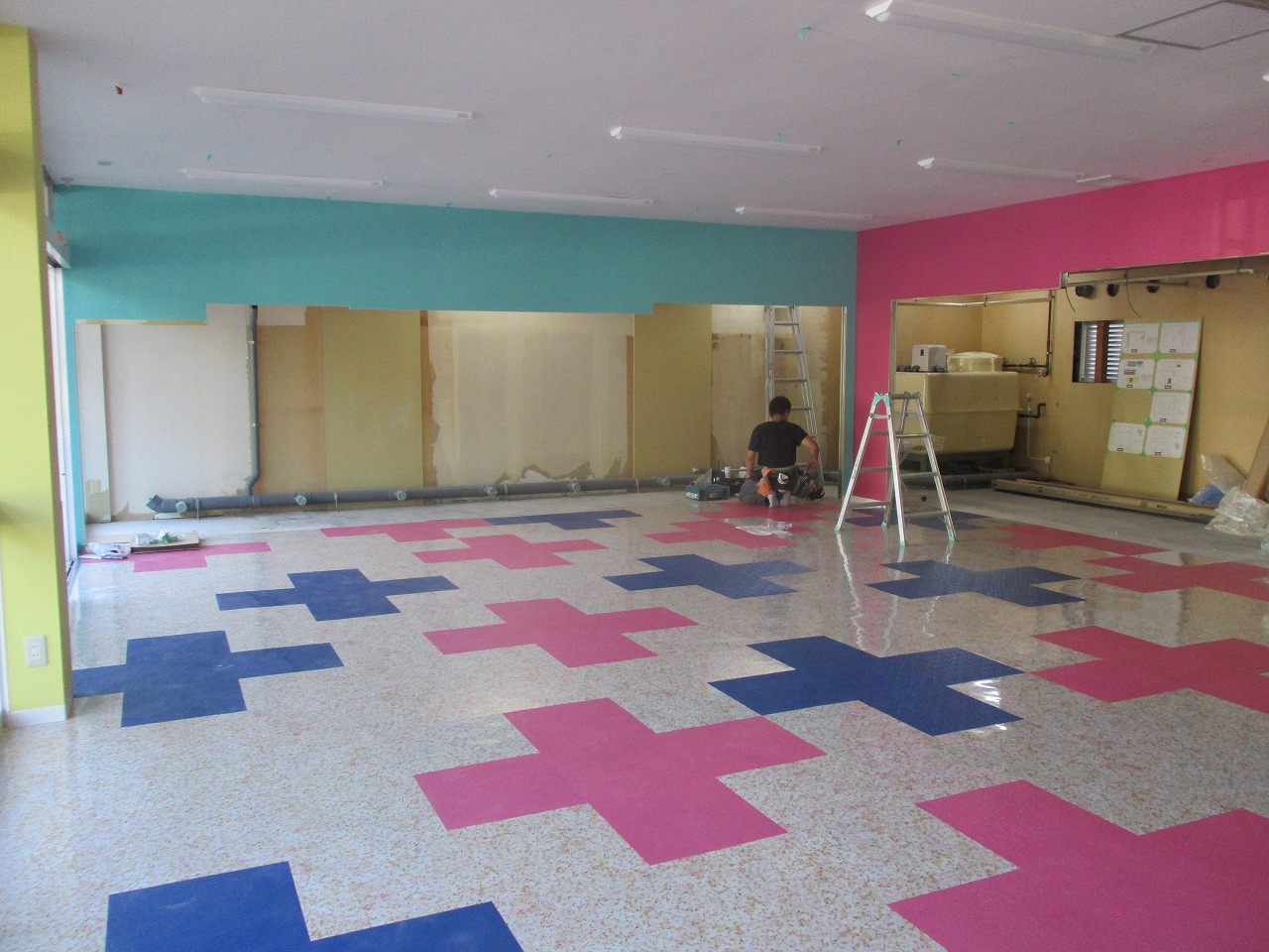 2017/09/20 コインランドリー小松山店/改装工事 緑区のコインランドリー終盤です クロスが貼り終わり、床も姿を現しました 存在感のある空間 この可愛らしい空間にキッツルームが来るのが楽しみです(#^.^#)
