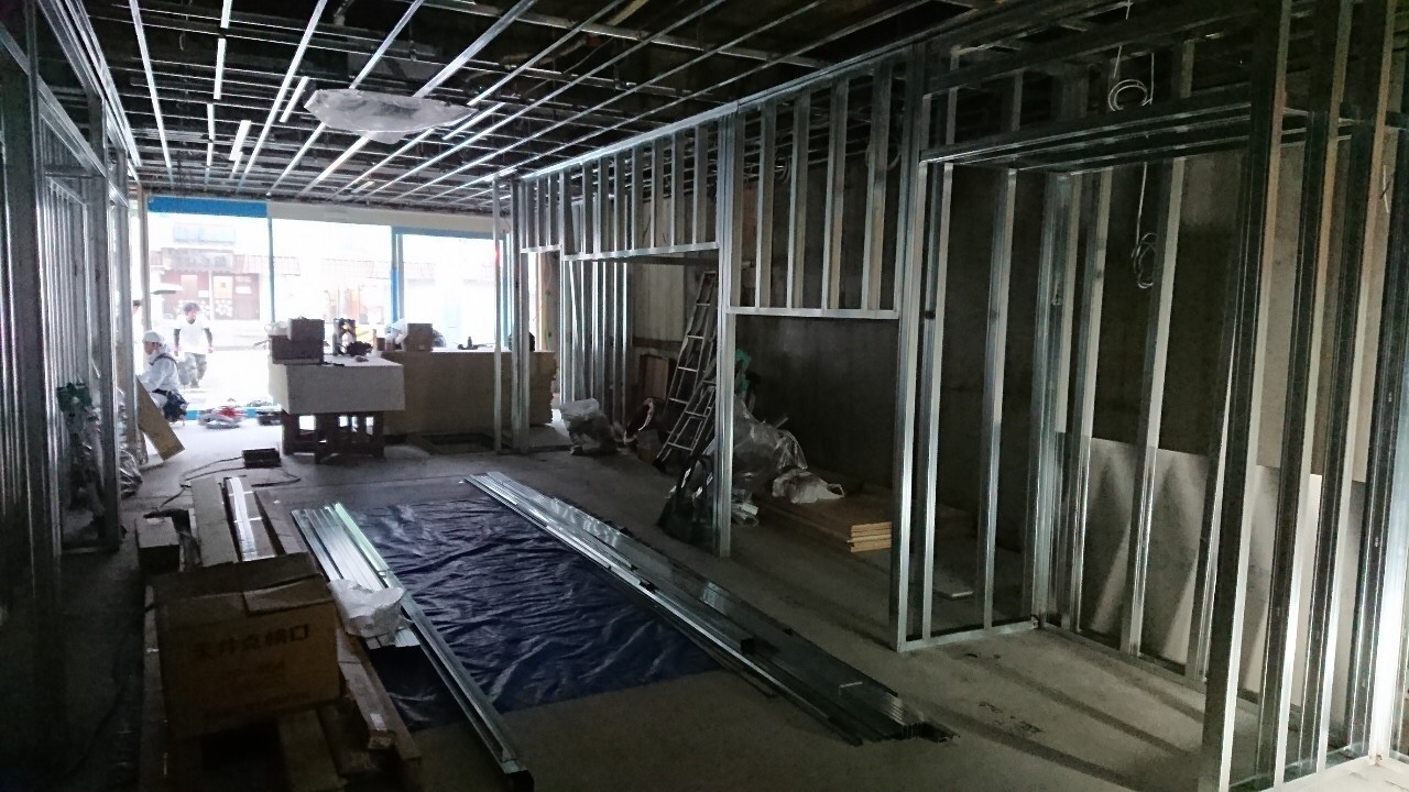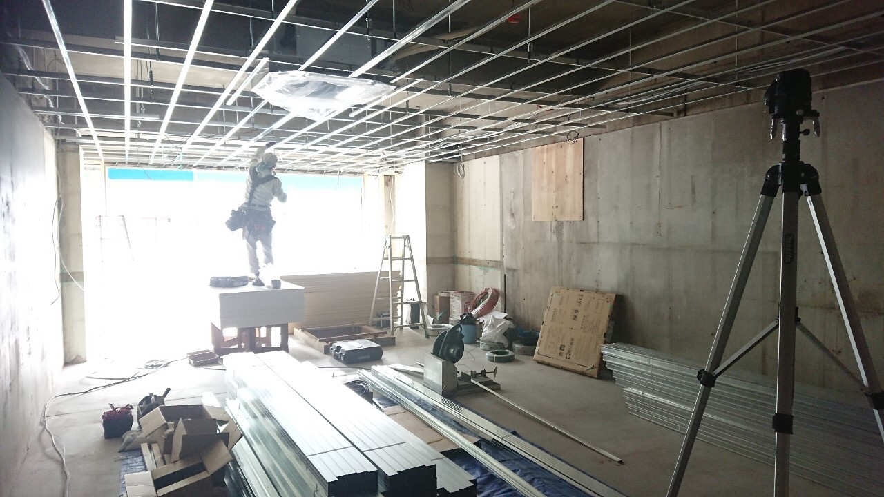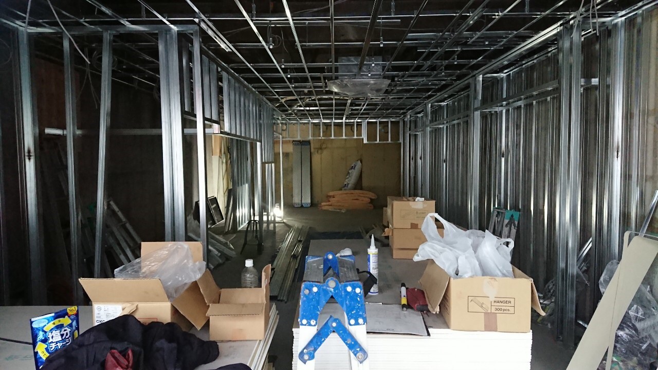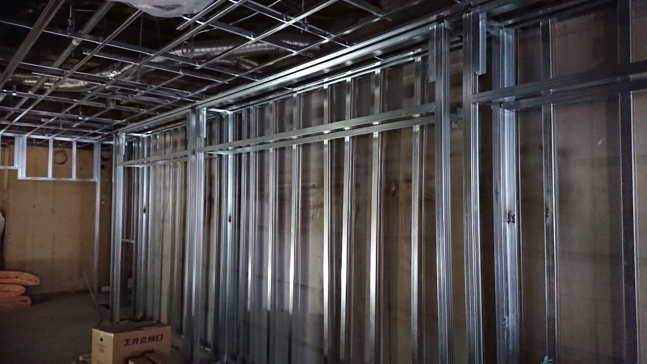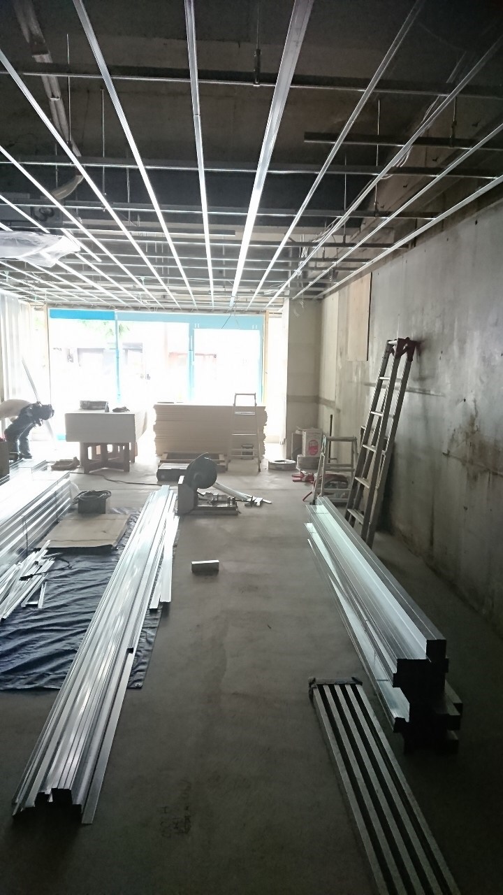 ↑ 天井の軽鉄が出来ただけですが、グッと『何かできてる感』が