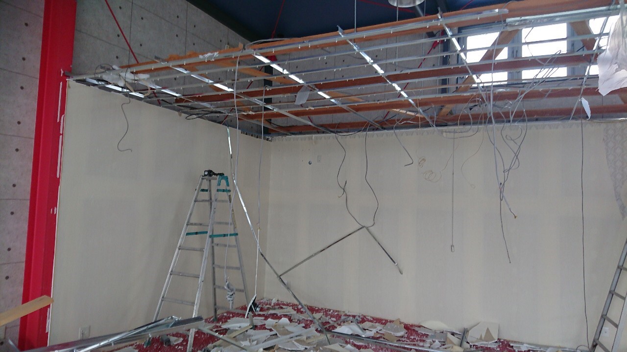 ↑ おおう!天井を解体したら鉄骨で天井が組んでありました。