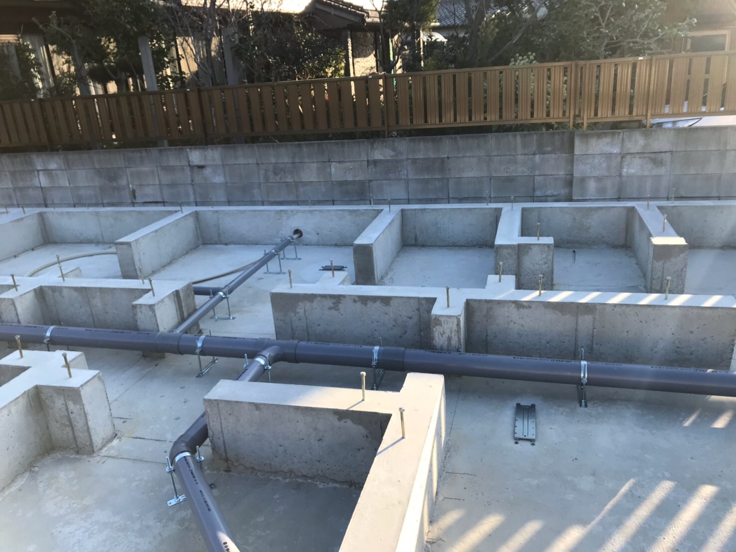 まあ、けど順調ですよね。排水の配管も先行で仕込んであります。