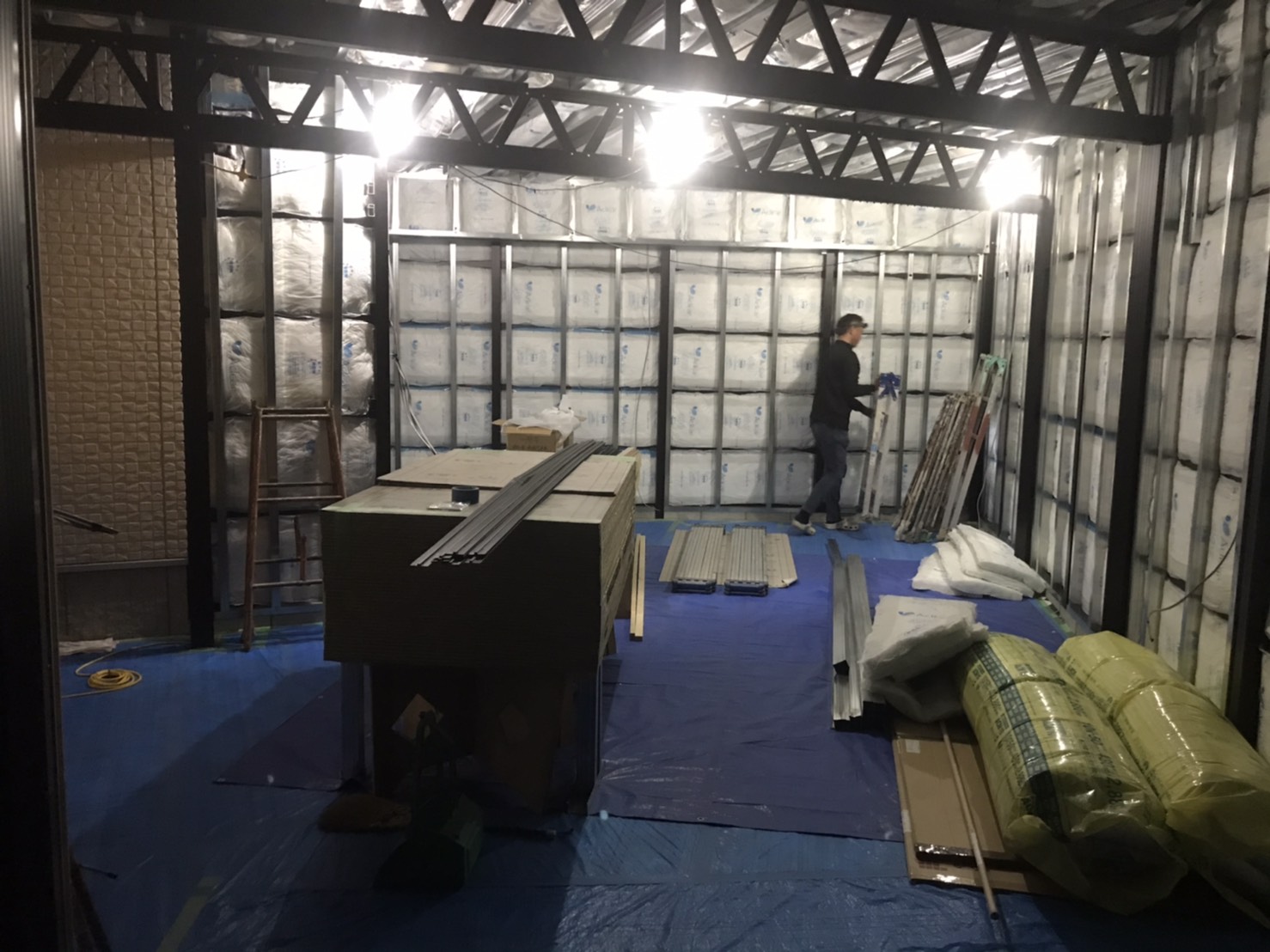 ↑ 先ずは内部の軽量工事です。中の居住性を高める為に、